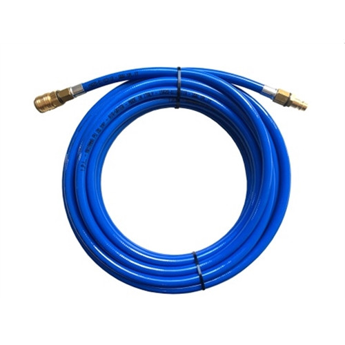 20 méter hosszú poliuretán szövetbetétes ipari, pneumatika és műhely tömlő, Rectus 26-os szériájú gyorscstlakozóval és dugóval szerelve.