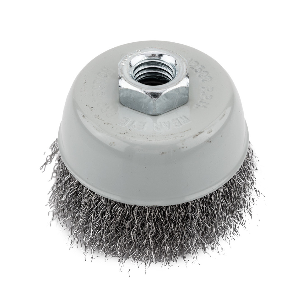 A GRAPHITE 75 mm átmérőjű, krimpelt acélhuzalból készült, M14, 57T428-as tompa kefe krimpelt acélhuzalból készült. M14-es menettel ellátva, sarokcsiszolókkal való használatra tervezték. A szerszám maximális fordulatszáma 12500 fordulat/perc. A termék megfelel az EN 1083-2 szabványnak, és kiválóan alkalmas fémfelületek érdesítésére, agresszív tisztításra, rozsda, festék vagy szennyeződés eltávolítására.