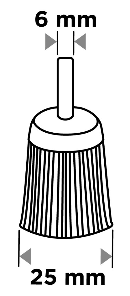 A GRAPHITE 25 mm-es nylon fenékkefe 6 mm-es szárral 57T426 nylonból készült. Maximális fordulatszáma 4500 fordulat/perc. A termék megfelel az EN 1083-2 szabvány követelményeinek, és 6 mm-es szárral rendelkezik, így bármilyen fúróval vagy csavarozógéppel használható. A GRAPHITE nejlonkefe sokoldalú termék számos famegmunkálási feladathoz.