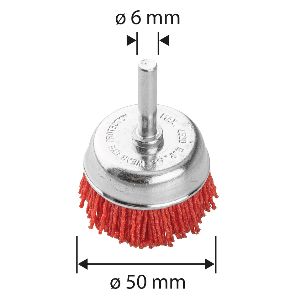 A GRAPHITE 50 mm-es nejlon fenékkefe 6 mm-es szárral 57T418 nylonból készült. Maximális fordulatszáma 4500 fordulat/perc. A termék megfelel az EN 1083-2 szabvány követelményeinek, és 6 mm-es szárral rendelkezik, így bármilyen fúróval vagy csavarozógéppel használható. A GRAPHITE nejlonkefe sokoldalú termék számos famegmunkálási feladathoz.