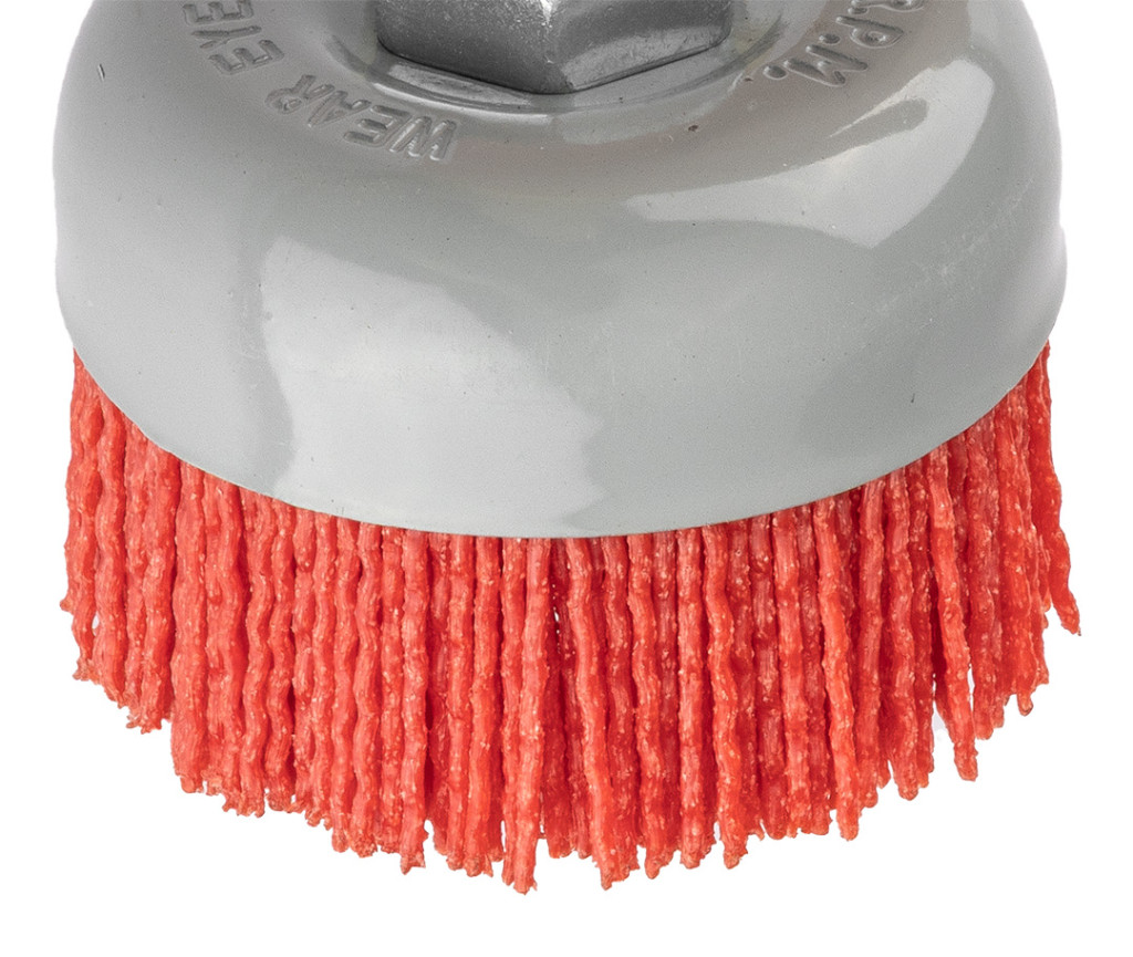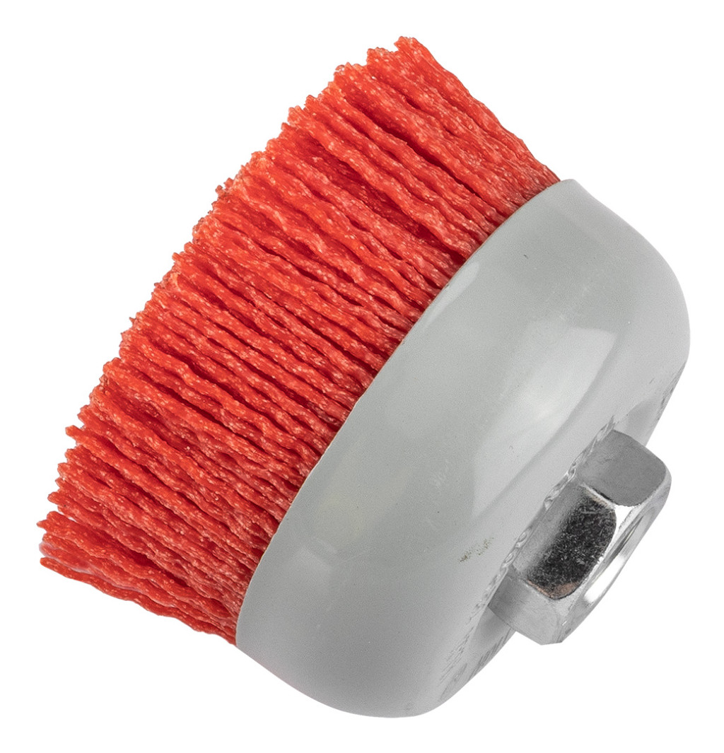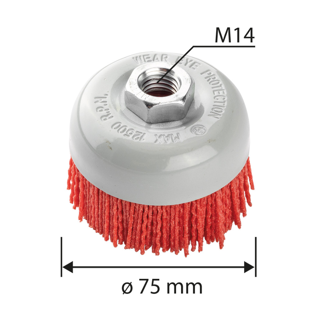 A GRAPHITE 75 mm átmérőjű, M14, 57T425 nylon tompa kefe nylonból készült. M14-es menettel van ellátva, és sarokcsiszolókkal való használatra tervezték. A szerszám maximális fordulatszáma 12500 rpm. A termék megfelel az EN 1083-2 szabványnak, és jól használható a felületek érdesítéséhez, tisztításához, festék vagy szennyeződés eltávolításához.