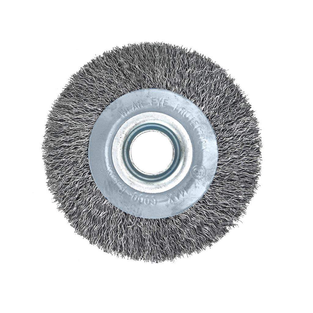 A GRAPHITE 57T435 150 x 32 mm-es, krimpelt drótkerékkeféje krimpelt acélhuzalból készül. Maximális fordulatszáma 6000 fordulat/perc. A termék megfelel az EN 1083-2 szabvány követelményeinek, és a készlet redukciókat tartalmaz: 2 x 12,2 mm (1/2"), 2 x 15,7 mm (5/8"), 2 x 19 mm (3/4"), 2 x 22,2 mm (7/8") és 2 x 25,3 mm (1"). A tartó alkalmas asztali csiszológépekkel való használatra. A GRAPHITE drótkefe sokoldalúan használható termék számos feladathoz.