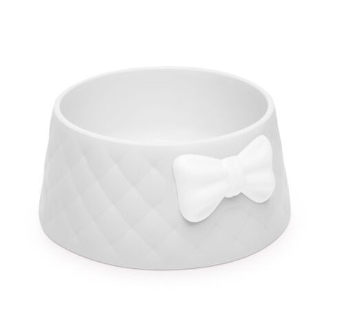 Etetőtál 18x8 cm szürke. Klasszikus etetőtál, itatótál, masnival és rombusz mintával díszített oldalfallal. Ideális lehet kiskutyák, macskák részére is. A tál mélysége lehetővé teszi, hogy itatótálként is használhassuk.