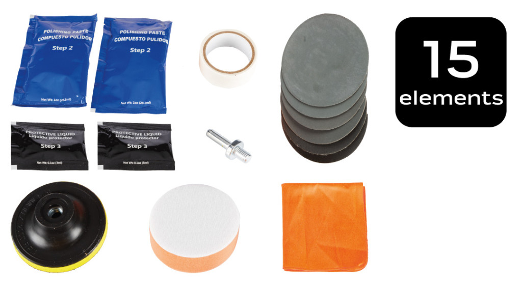 Fényszóró felújító-polírozó készlet, 15db-os