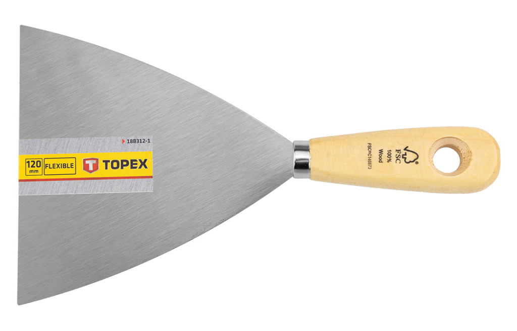 Festékkaparó, spakli, 120mm, rozsdamentes acél, fanyelű, min. rendelés: 3db