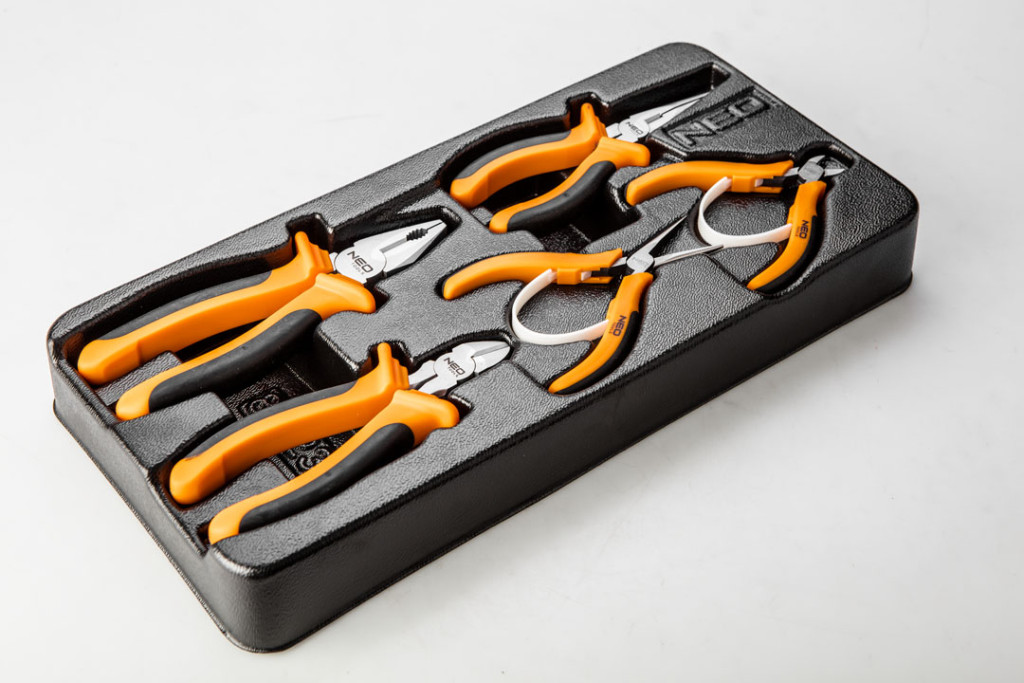 Fogókészlet, 5db, műhelykocsitálcával