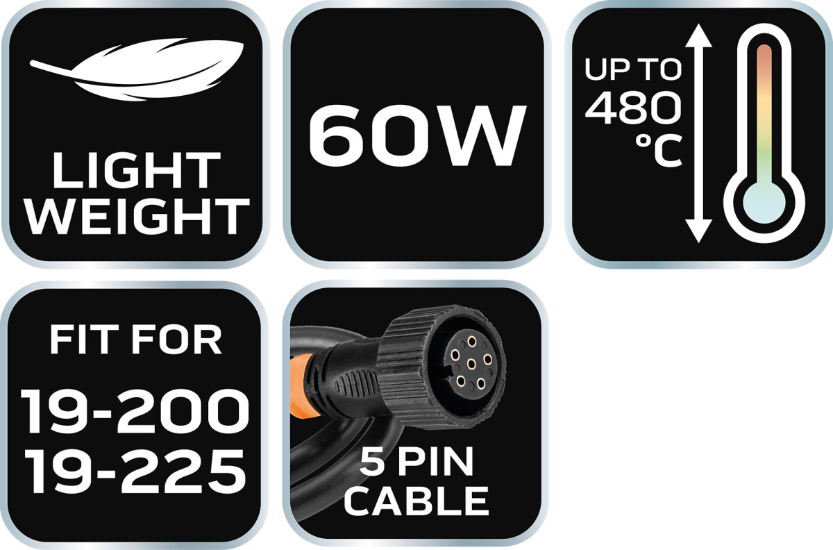 NEO 19-220 forrasztólombik (5 PIN dugó) 5 PIN dugóval és 60 W-os teljesítménnyel. Jellemzője a 480 °C-ig terjedő üzemi hőmérséklet. A lombik kerámia, robusztus fűtőelemmel van felszerelve. Kompatibilis a piacon kapható számos termékkel, beleértve a NEO 19-200 forrasztóállomást és a NEO 19-225 hegykészletet. A könnyű ház nagyobb pontosságot tesz lehetővé a műveletek során. Szakembereknek és rajongóknak ajánlott.