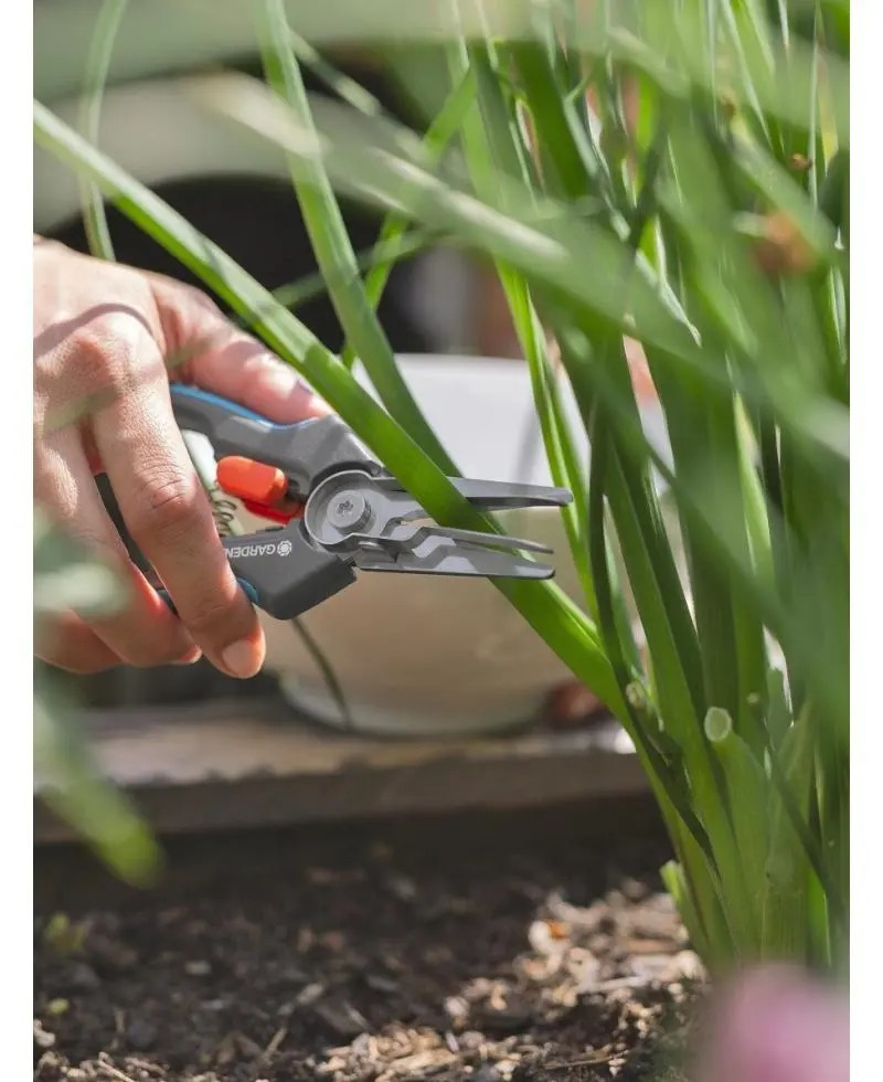 A GARDENA GripCut fogóval van felszerelve, és a beépített tartó funkciónak köszönhetően egy kézzel egyszerre vághatsz és tarthatsz. A GripCut sokoldalúsága rendkívül hasznos: Darabolj fel friss fűszernövényeket, például egy szál petrezselymet vagy metélőhagymát, és egyúttal tartsd is meg őket. Különösen a chilipaprikák betakarítását könnyíti meg, mert nem kerül csípős lé az ujjaidra. Nem fogod leejteni a termést, ráadásul az egyik kezed szabad, hogy megfogd a tálat vagy a szűrőt, ami azt jelenti, hogy többé nem kell lehajolnod, hogy a földön lévő edénybe tedd a dolgokat. Vágáskor a kiváló minőségű és tartós rozsdamentes acél vágóélek nagyon meggyőzőek. Az éles olló tisztán és pontosan vág egészen a hegyéig. Az ergonomikus, puha alkatrészekkel ellátott ErgoTec markolatoknak köszönhetően a szüretelő olló tökéletesen illik a kézbe és csúszásmentes. Az egykezes zárral a GripCut biztonságosan lezárható a tároláshoz. A vágóélek élelmiszer-biztosak, ami azt jelenti, hogy nem bocsátanak ki semmilyen ízt vagy szagot. A könnyű tisztítás érdekében egyszerűen szereld szét először a fogót, majd tedd a mosogatógépbe a szüretelő ollóval együtt.