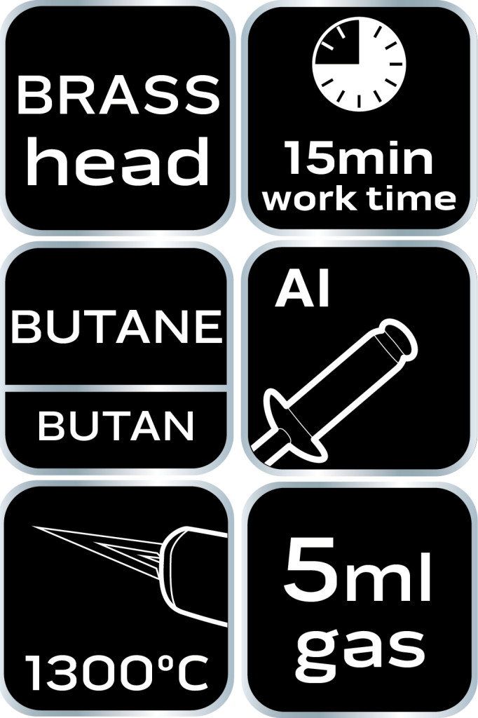 A NEO márkájú, 5 ml-es 19-906-os mikrotöltő praktikus toll alakú és könnyen használható. Az 5 ml-es patron gyors feltöltésre alkalmas. A mikroláng akár 15 percig is dolgozhat 1300 °C-os hőmérsékleten. Az ergonomikus forma megkönnyíti a készülék manőverezését a precíziós munka során. A mikroégő sárgaréz égővel van felszerelve, amely tartós a használat során. Otthoni és professzionális használatra ajánlott.