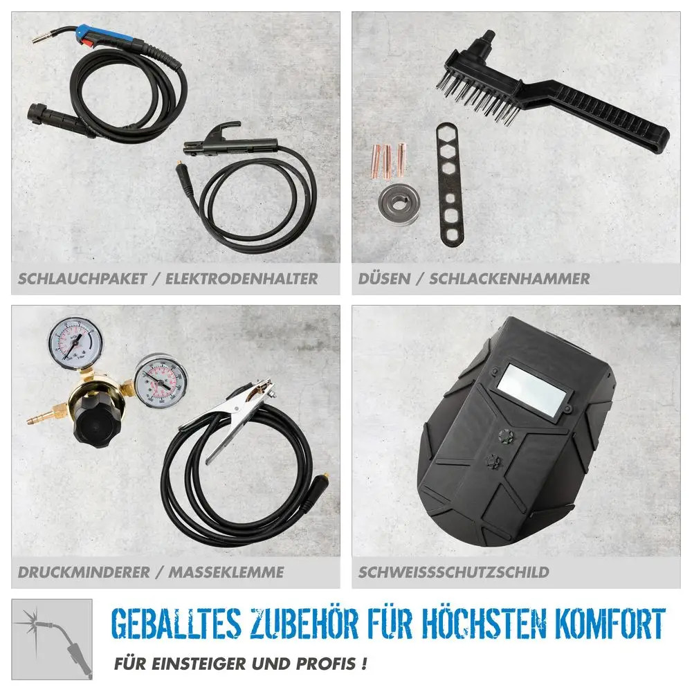 Az Uni-Mig 165 SYN inverteres hegesztőgép a Güde termékcsalád egyik univerzális inverteres hegesztőgépe. Az Uni-Mig 165 SYN-nel gyakorlatilag mind a 4 hegesztési folyamat lehetséges, a MIG-MAG, az MMA (elektródahegesztés), a fluxusos (magos huzalhegesztés) és végül a TIG hegesztés (opcionális). IGBT támogatott inverter technológia a rendkívül gyors kapcsolási folyamatokhoz és a precíz hegesztőáram szabályozáshoz, amely leegyszerűsíti a vékonyabb lemezek hegesztését és jelentősen csökkenti a hegesztési gyöngyök képződését. A bevált kiegészítő tulajdonságok, mint például a tapadásgátló, a forró indítás és az íverő maximális hegesztési kényelmet biztosítanak még nehéz körülmények között is. Az új, innovatív, szinergikusan vezérelt huzalelőtolás a hegesztési eljárás, a huzalvastagság és a hegesztési vastagság kiválasztása után automatikusan a megfelelő sebességhez igazodik. Ezek a kiegészítő funkciók különösen a kezdő és a tapasztalatlan hegesztők számára teszik lehetővé a jó hegesztési eredmények azonnali elérését. Az elektródatartó és a földelő bilincs, valamint a hegesztőpajzs és a kefekalapács az MMA folyamatokhoz természetesen a szállítási terjedelem része. Ugyanez vonatkozik természetesen a MIG-MAG égőre és a védőgáz nyomásszabályozójára is.• 4 funkciós MIG/MAG, elektródák, maghuzal és TIG (opcionális)• A szinergikusan szabályozott huzalelőtolás garantálja a legjobb hegesztési eredményt• Melegindítás az elektróda optimális gyulladási viselkedéséhez• Az Arc-Force stabilizálja az ívet a hegesztőáram automatikus beállításával, és így tökéletes hegesztési eredményt biztosít• A tapadásgátló megakadályozza, hogy az elektróda a munkadarabhoz tapadjon• alkalmas kis orsókhoz és D200 műanyag orsókhoz (5 kg)• Ház porszórt acéllemezből• Termikus túlterhelés elleni védelem• 3 m-es tömlőcsomag Euro csatlakozással (MB15)• 1,2 m-es földkábel földelőbilincssel• 1,8 m elektródatartó• Érintkezőcsúcs (0,8 mm)• 1 gázfúvóka• 2 órás nyomáscsökkentő• Gáztömlő• Hegesztőpajzs és salakokalapács kefével• ED max. 230 V hegesztőáramnál (MMA/MIG/MAG/TIG): 30%Hálózati feszültség: 230 VFrekvencia: 50 HzVédelmi osztály (IP): 21SSzigetelési osztály: HÜresjárati teljesítmény: 46WHatékonyság: 85%max hálózati teljesítmény 230V: 6,9 kVABiztosíték, lassú: 16 ANyitott áramköri feszültség: 60Vmax. hegesztőáram 230V: 160AHegesztőáram szabályozási tartomány: 20-160 AKapcsolási fokozatok száma: folyamatosanÜzemi ciklus max. 230 V áramerősségnél: 15%Javasolt anyagvastagság: 1-10 mmHuzalvastagság (magos huzal): 0,9 mmHuzalvastagság (acél): 0,6 - 1,0 mmHegesztőhuzal orsó max.: 5,0 kgMMAHegesztőáram szabályozási tartomány: 20-160 AElektróda vastagság: 1,5 - 4,0 mmÜzemi ciklus max. 230 V áramerősségnél: 15%ANTI STICK: igenÍV ERŐ: igenHOT START: igenMIG / MAGHegesztőáram szabályozási tartomány: 50-160 AÜzemi ciklus max. 230V áramerősségnél: 30%WIGHegesztőáram szabályozási tartomány: 20-160 AÜzemi ciklus max. 230V áramerősségnél: 30%Hossz: 400mmSzélesség: 190mmMagasság: 300mmCsomagolás méreteiHossza 475 mmszélessége 375 mmMagasság 350 mmNettó tömeg: 10 kgBruttó tömeg: 12,6 kgGTIN: 4015671005052Cikkszám: 20077
