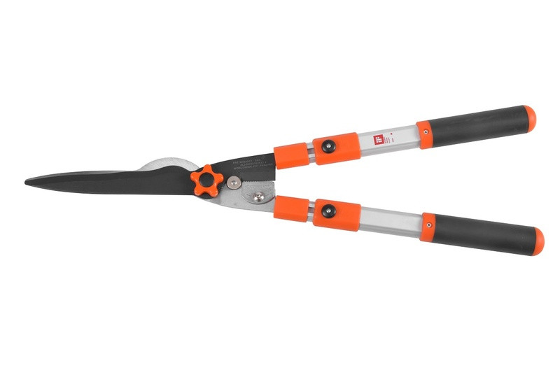 Teleszkópos olló a sövények és bokrok nyírására. A fogantyúja négy pozícióban állítható 67 és 87 cm közötti tartományban. A pengék speciálisan hajlítva vannak, ami megkönnyíti a vágást.