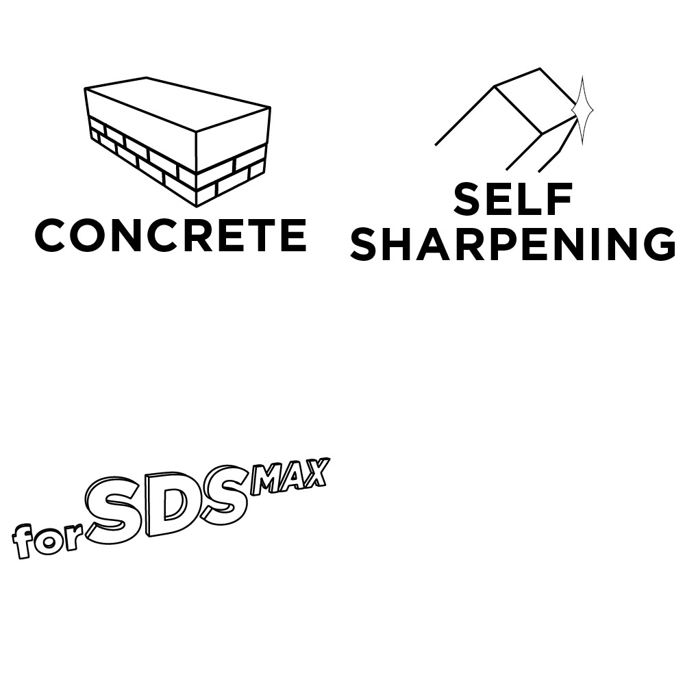 Tégla, laza kőzet, üreges tégla, beton vésésére tervezték.
