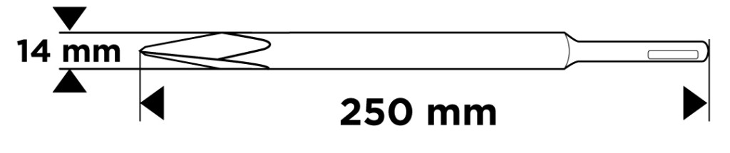 GRAPHITE 55T108 Hegyesvéső, SDS PLUS, 14X250mm. A szerszám jól teljesít beton, kő megmunkálásakor. Kovácsolt acél véső amely minden profi szakember és barkácsoló felszerelésében felbecsülhetetlen értékű eszköz.