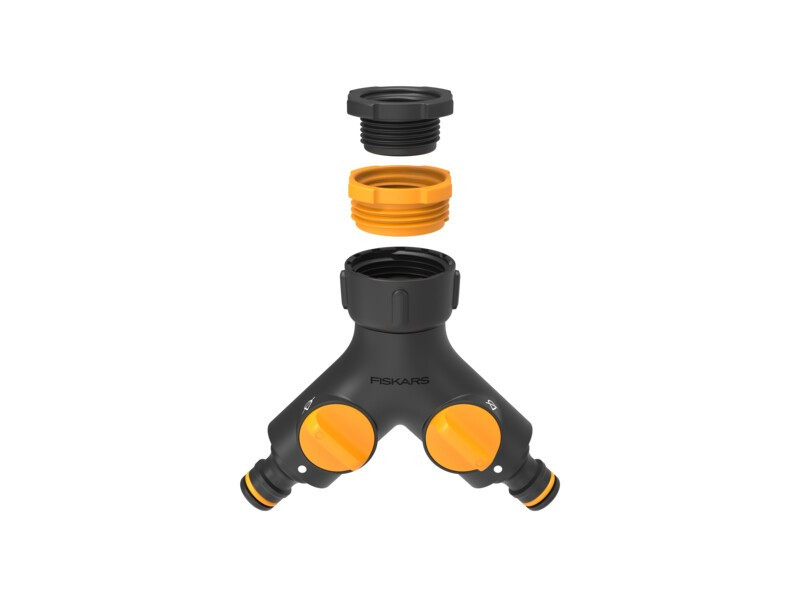 A csaptelep csatlakozó vízzáró csatlakozást biztosít két tömlő és a vízforrás között.A különálló áramlásszabályozó szelepekkel a víznyomást külön-külön ki-be lehet kapcsolni.