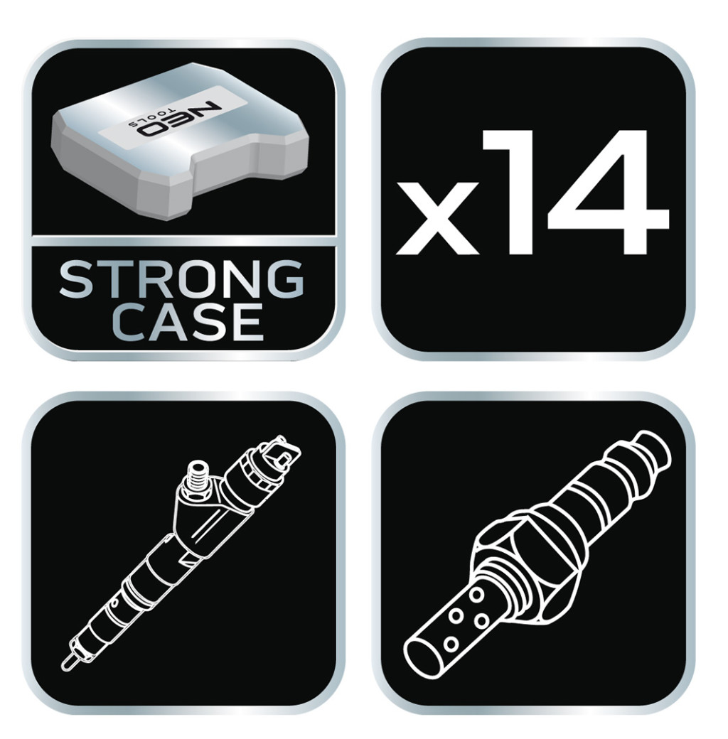 Lambda-szonda és porlasztócsúcs szerelő készlet, 14 db-os NEO 11-880