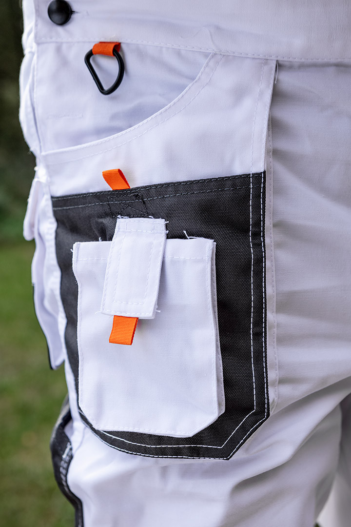 A NEO fehér kantáros munkanadrág kiváló minőségű anyagból készül, a kopásnak kitett helyeken meg van erősítve. A tartósságot a tripla varrások növelik és van rajta a térdvédőknek kialakított zseb is. A kialakított zsebekben elférnek a szükséges szerszámok, a kantárnak köszönhetően még a nagy terhelés sem okoz kényelmetlenséget munka közben. A nadrágon található okostelefonnak kialakított zseb – nagyobb méretű a korábbiaknál, hogy elférjenek benne a nagyobb kijelzős modellek is. A termék EN ISO 13688:2013 szabvány szerinti kivitelezése és a CE európai tanúsítványa minőségének garanciája. A NEO márka a professzionális igényeket is kielégíti.