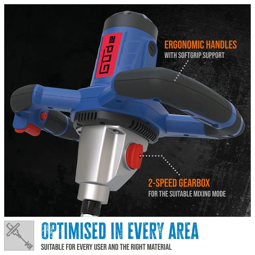 Leírás A Güde GRW 1814.1 keverője egy professzionális, nagy teljesítményű habarcs- és festékkeverő por alakú építőanyagok, valamint festékek és diszperziók keveréséhez. A nagy teljesítményű, nagy nyomatékú, 1800 W-os motorral és a fém fogaskerékházba épített, robusztus, 2 sebességes sebességváltóval felszerelt keverőgép számára még a nagyobb igénybevételt jelentő munkák sem jelentenek problémát. A fogantyúban lévő elektronikus sebességszabályozás, a keverőkosár kíméletes indítását biztosító lágyindítás funkció a lehető legnagyobb munkakomfortot és fáradtságmentes munkavégzést garantálja. A GRW 1814.1 keverő mellett a szállítási terjedelem már 2 keverőkosarat tartalmaz a különböző anyagokhoz, így minden alkalmazáshoz optimálisan fel van szerelve. Műszaki adatok: Hálózati feszültség: 230 V Frekvencia: 50 Hz Motorteljesítmény (P1): 1800 W max. üresjárati fordulatszám: 0-460 | 0-720 1/min Védelmi osztály: II Védelmi osztály (IP): 20 Keverőedény: M14 Max. Keverési térfogat: bis 100 l Keverő tartozék Ø: 140 mm Keverő tartozékok száma: 2 Stk. Keverő bal oldali spirál: Ja Keverő jobb oldali spirál: Ja Softgrip: Ja Kábel hossza: 3,7 m Rezgés: 2,96 m/s² | K = 1,5 m/s² Hangnyomásszint: 93 dB(A) | K = 3 dB Hangteljesítményszint LWA: 104 dB(A) | K = 3 dB Zajérték LWA: 104 dB Hosszúság: 340 mm Széles: 210 mm Magasság: 885 mm Bruttó tömeg: 7,9 kg