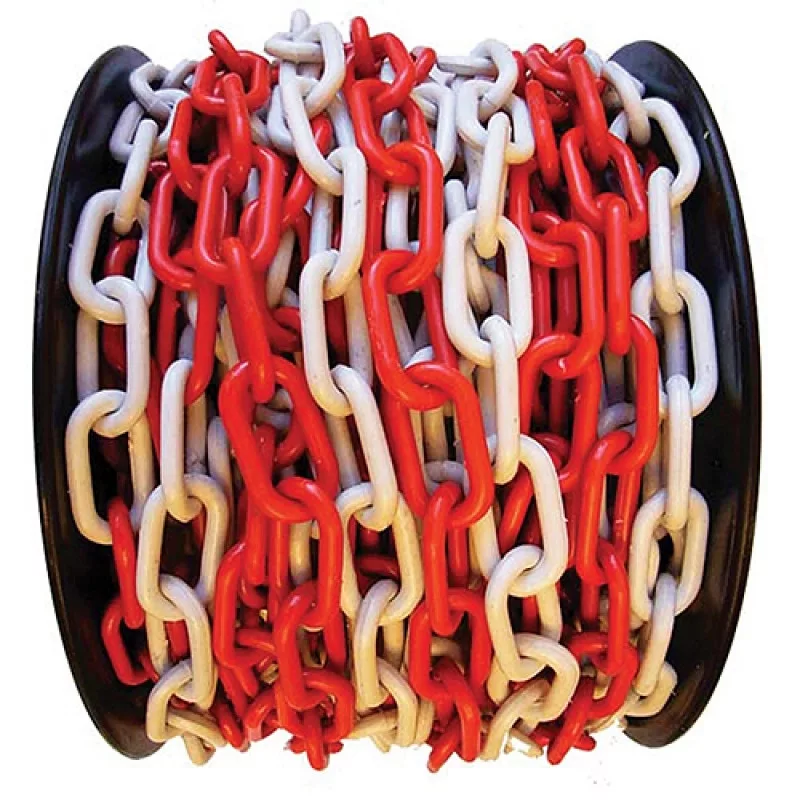 LÁNC MÛANYAG JELZÕLÁNC 6 MM PIROS-FEHÉR/25 M