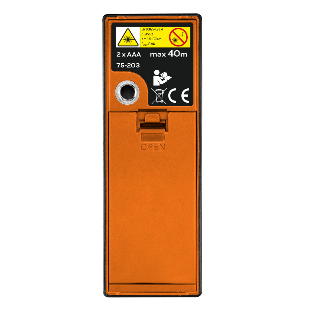 NEO Lézeres távolságmérő. Profi minőségű műszer, alkalmas: távolság, felület, térfogat mérésre. A távolságmérő funkciói lehetővé teszik az indirekt mérést (a Pitagorasz számítási móddal), valamint a folyamatos mérést. Ezen túlmenően a készülék automatikus szögmérővel is rendelkezik, ami lehetővé teszi a készülék beállítási szögének leolvasását. A készülék maximális mérési távolsága 40 m, a mérési pontosság +/- 2 mm. A termék hasznavehető az építőiparban, geodéziában, műszaki projekteknél, valamint a háztartásban. A készülék 0°C és 40°C közötti hőmérséklet tartományban alkalmazható. A távolságmérő modern érintőkijelzővel került felszerelésre. A CE tanúsítvány igazolja az európai biztonsági normáknak való megfelelést.A NEO márka a professzionális igényeket is kielégíti.
