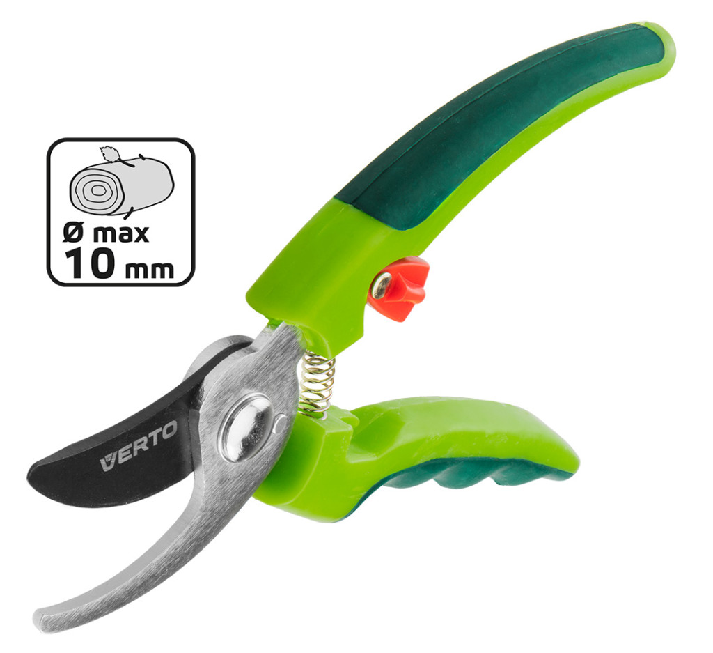 A VERTO 15G200-as mellévágó metszőolló kiváló eszköz a kerti munkákhoz, melynek hossza 185 mm, és maximális vágási átmérője 10 mm. Ez egy by-pass típusú metszőolló, mely ideális virágok és cserjék metszésére. A penge 42 mm hosszú, és teflon bevonattal van borítva, így védve van a korróziótól, ami növeli az élettartamát. Az élek blokádja megakadályozza a véletlenszerű kinyitást, ezáltal biztonságosabbá téve a használatot. Az ergonomikus műanyag fogantyú csúszásgátlóval van ellátva, biztosítva a biztonságos és kényelmes munkavégzést. A fogantyú szűken nyitható, így kényelmesen illeszkedik a női kezekbe is. A VERTO márka megbízható minőséget és kényelmet kínál a kertészkedéshez és növényápoláshoz.