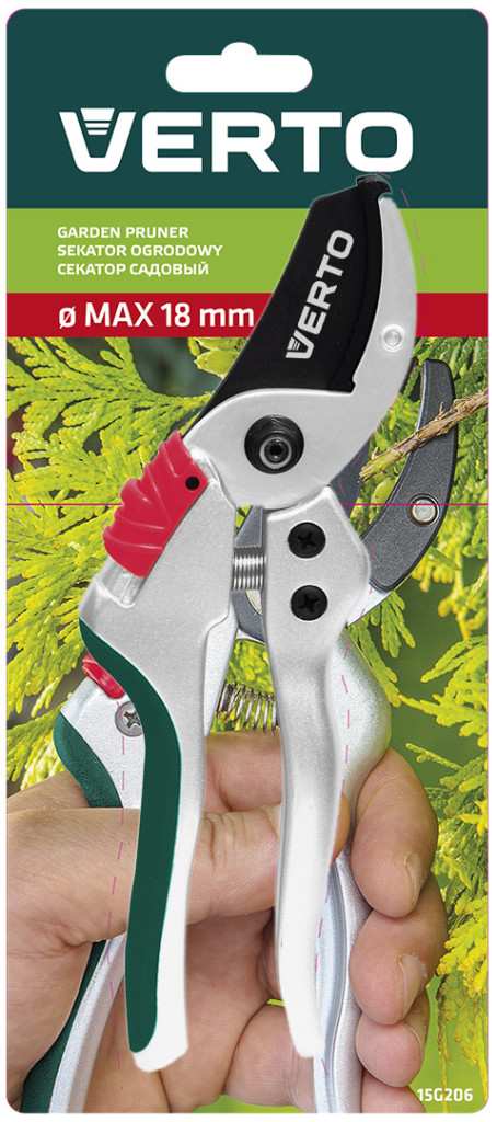 A VERTO 15G207-es vágóüllős alumínium kerti metszőolló kiváló választás mindazoknak, akik professzionális és hatékony eszközt keresnek kerti munkáikhoz. Ez a metszőolló ideális ágak és cserjék precíz vágására, akár 18 mm-es átmérőig, és biztosítja a kényelmes és hatékony munkavégzést. Az élek ergonomikus 15°-os görbülete jelentősen megkönnyíti a munkát és növeli a munkavégzés kényelmét. Ezáltal a vágás pontosabb és hatékonyabb lesz, minimalizálva a fáradozást és a szerszám használójának fáradtságát. Az élt teflon bevonat borítja, ami védi a korróziótól és biztosítja a sima és precíz vágást. Az alumíniumból készült ház garantálja a szerszám hosszú élettartamát és tartósságát, így hosszú távon is megbízhatóan használható. Az élek blokádja megakadályozza a véletlenszerű kinyitást, így biztosítva a biztonságos és precíz munkavégzést. A műanyagból készült ergonomikus fogantyú csúszásgátlóval van ellátva, ami növeli a munkavégzés biztonságát és kényelmét. Ha profi minőségű és megbízható kerti metszőollót keres, ami könnyedén kezeli az ágak és cserjék metszését, akkor a VERTO 15G207-es modell tökéletes választás lehet az Ön számára. Próbálja ki most, és tapasztalja meg a kerti munkák egyszerűségét és hatékonyságát!