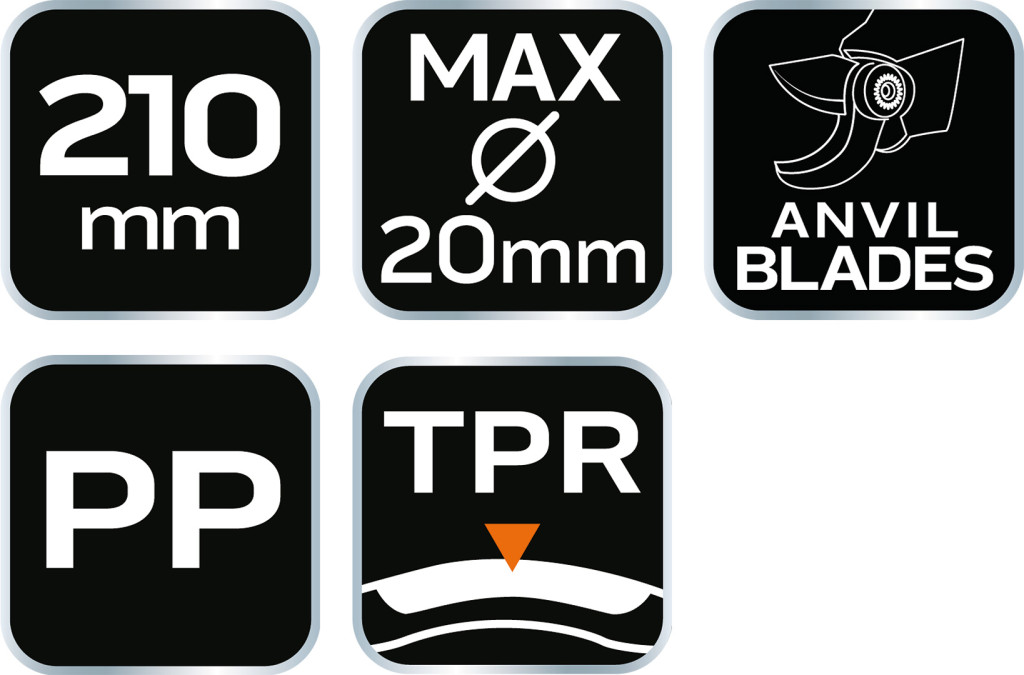 A NEO 15-211 rávágó metszőolló egy 210 mm hosszú eszköz, amely legfeljebb 20 mm átmérőjű vágásra alkalmas. Tapadásmentes bevonattal ellátott, tartós acélpengékkel rendelkezik, így kemény és száraz fával is hatékonyan dolgozik. A fás szárak nyírására is alkalmas. Az ergonomikus polipropilén fogantyú puha TPR gumi részekkel biztosítja a kényelmet és a fogást. A penge reteszelésének lehetősége növeli a szerszám biztonságát. A NEO metszőollót mind a szakembereknek, mind a kertészkedés szerelmeseinek ajánljuk.