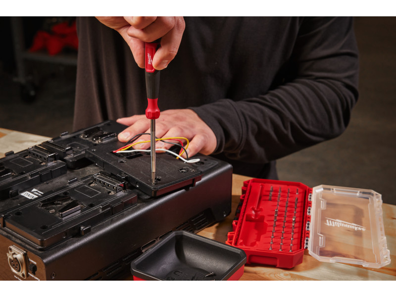 Sokoldalú, könnyen irányítható csavarhúzó cserélhető bitfejekkel.Kényelmes, csúszásmentes markolattal rendelkezik.Kétféle hosszúságú szárral tervezték, amely 360°-ban elforgatható hátsó kupakkal is rendelkezik, így gyorsabb és pontosabb a munkavégzés.A krómozott hatlapú befogású bittartó rozsdavédelmet biztosít, és csökkenti a bitek kopását. A PACKOUT™-ban való használatra tervezett tok. A készlet tartalma: Biztonsági Hex: 2 mm, 2.5 mm, 3 mm, 3.5 mm / Biztonsági Torx: T5, T6, T7, T8, T9, T10, T15 / Lapos: 1 mm, 1.5 mm, 2 mm, 2.5 mm, 3 mm, 3.5 mm,ó / Hex: 0.9 mm, 1.3 mm, 1.5 mm / Phillips: #000, #00, #0, #1, #2 / Spanner: #4, #6 / Négyzet: #1, #2 / Pentalobe: P2, P5 / Torx: T3, T4 / Y-Type: #000, #0, #1 / Stand Off: SO / Triangle #2, #3