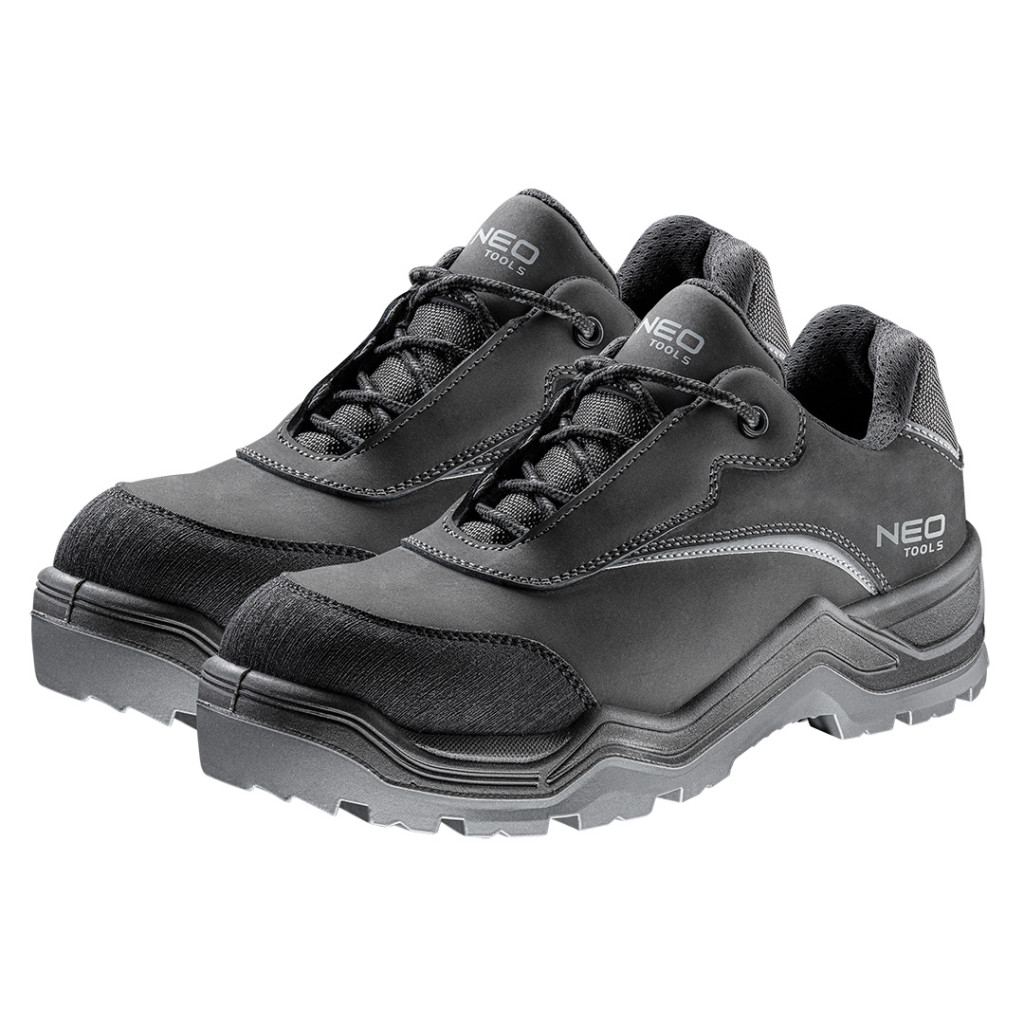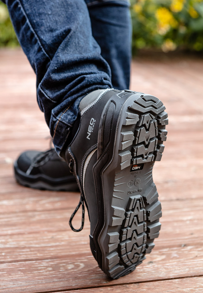 NEO 82-150 Munkavédelmi félcipő S3 SRC, védi a lábat a hidegtől, átázástól és beázástól. A lábbeli nagyon kényelmes, nem tartalmaz fém részeket, ezáltal a lábbeli könnyebb és a fémdetektor kapu nem jelez be. Rázkódást elnyelő, kopásnak, olajnak, benzinnek és egyéb organikus hígítónak ellenálló csúszásgátló talp, 200J ütésnek ellenálló, üvegszál orr, átszúrásnak ellenálló kevlár betét és még számos további védelem a termékben. A munkavédelmi félcipő a kopás ellen számos erősítéssel és védelemmel rendelkezik, CE tanúsítvány, megfelel a EN ISO 20345:2011. szabványnak