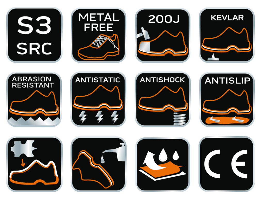 Kopásnak, olajnak, benzinnek és hígítónak ellenálló két sűrűségű PU anyagból készült cipőtalp (felső része puhább a komfortos járás érdekében, az alsó keményebb rész óvja a cipőtalpat a kopástól)