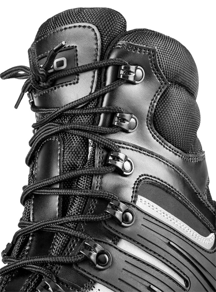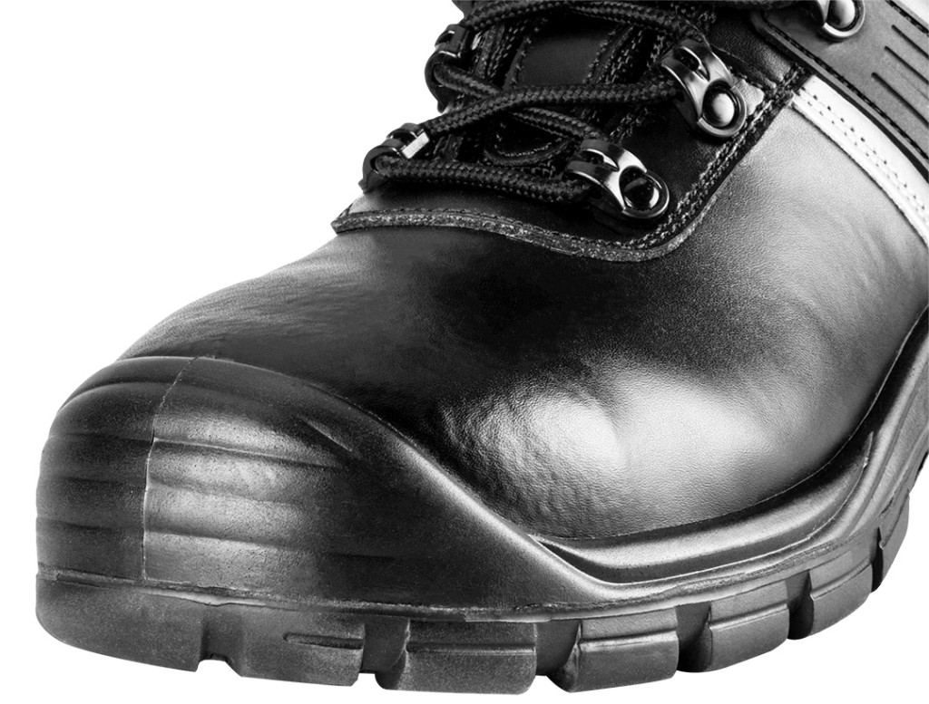 NEO S3 SRC minősítésű munkabakancs, kettős anyagú felsőrésszel, poliuretán bevonatú bőrből (action smooth lather) és oxford szövetből, fémhurokkal és fényvisszaverő elemekkel. A kompozit talpbetét 200J ütésvédelmet biztosít, a kevlárból készült, átszúrás elleni talpbetét pedig védi a lábfej alsó részét. A bakancs beépített sarokkal, formázott hátrésszel, megerősített sarokbetéttel, kettős anyagú talppal rendelkezik. Ellenálló az olajjal, benzinnel és más szerves oldószerekkel szemben. Anti-elektrosztatikus tulajdonságú. A sarok vízáteresztő képessége és vízfelvétele megfelel az EN ISO 20345 szabvány szerinti biztonsági lábbelik osztályozásának. 39-47 méretben kapható.