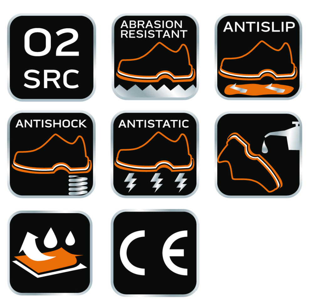 CE tanúsítvány az EN ISO 20347: 2012 SRC FO O2 szabványnak való megfelelés