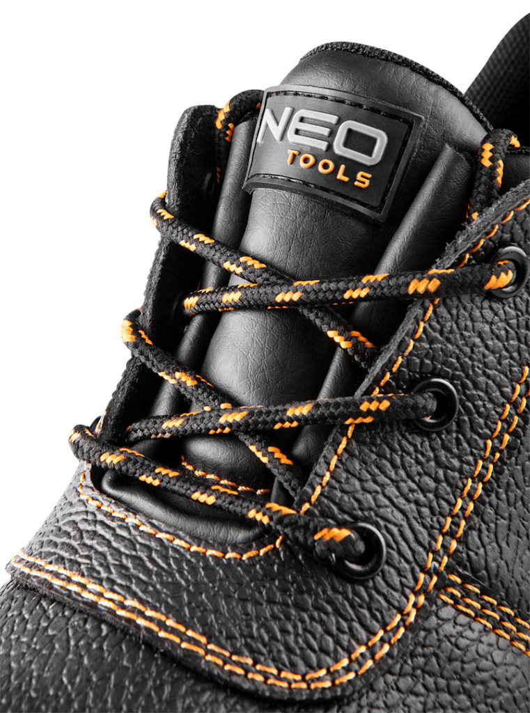 NEO bőr mukacipő, acélbetétes, S1 SRC besorolással. Hasított bőr felsőrésszel, fémhurokkal, dupla és tripla varrással a lábbeli megerősítésére. Az acél talpbetét védelmet nyújt a 200 J energiával egyenértékű ütésekkel szemben. A cipő ellenáll az olajnak, benzinnek és más szerves oldószereknek. A sarokrész energiaelnyelése megfelel az EN ISO 20345 szabvány szerinti biztonsági lábbeli besorolásnak. A cipő több méretben kapható.