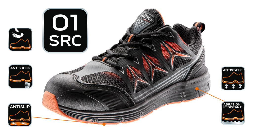 NEO Munkavédelmi cipő elengedhetetlen védéőeszköz a munkavégzéshez. A felsőrész lélegző anyagból készül. A gumival bevont, EVA habból készülő csúszásgátló talp kimagaslóan komfortos és hatékonyan csillapítja a rázkódást, garantálva a biztonságot és a kényelmet. A cipő belső részének puha kialakítása kényelmes viseletet biztosít.