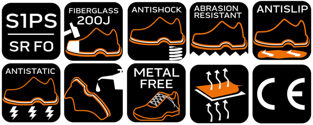 A lábujjakat üvegszálas cipőorr betét védi az ütésektől akár 200 J erejű behatásig