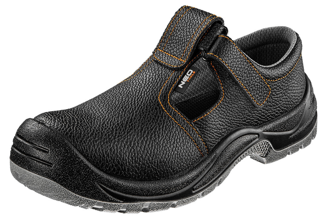 NEO 82-099 MUNKAVÉDELMI SZANDÁL, BŐR, S1 FO, ACÉLBETÉTES. A védelmi kategória azt is garantálja, hogy a cipő talpa ellenáll a szénhidrogéneknek, például olajnak vagy benzinnek. A NEO TOOLS munkaszandál bőr felsőrésszel, textilbéléssel, EVA habszivacs talppal és PU/PU talppal rendelkezik. Antisztatikus tulajdonságokat és csillapítást biztosít a sarokrészen. A szellőzőnyílások megfelelő szellőzést biztosítanak a meleg nyári hónapokban. A NEO TOOLS márkájú lábbeli az EN ISO 20345 szabványnak megfelelően készült, és tökéletes a mindennapi használatra a szakemberek számára.