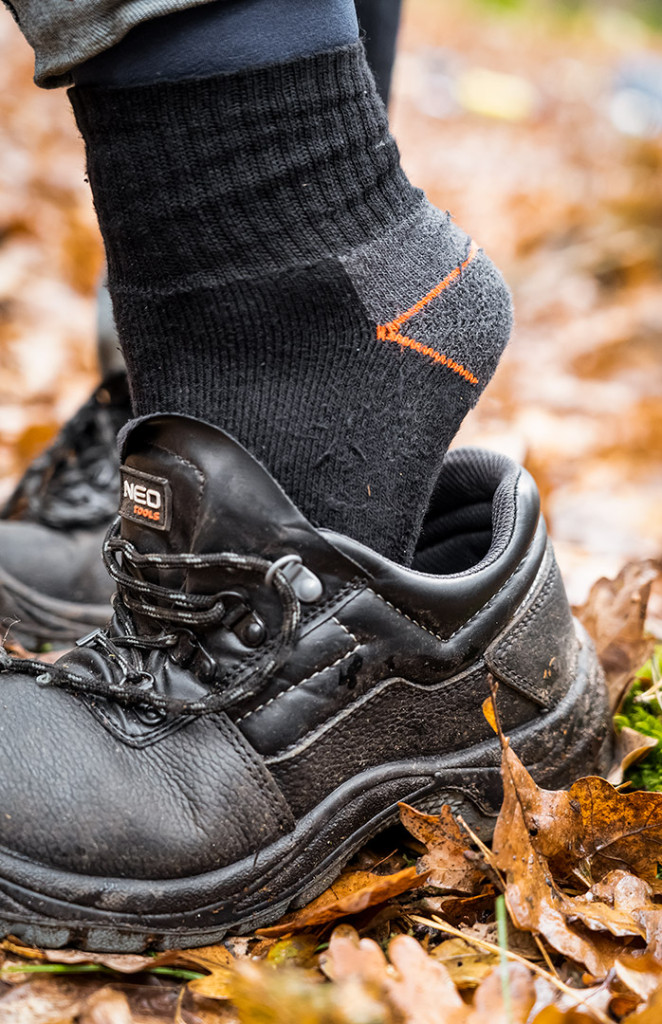 Munkavédelmi zokni, rövid, 70% pamut, 30% poliészter, megerősített sarok, lélegző, 39–42
