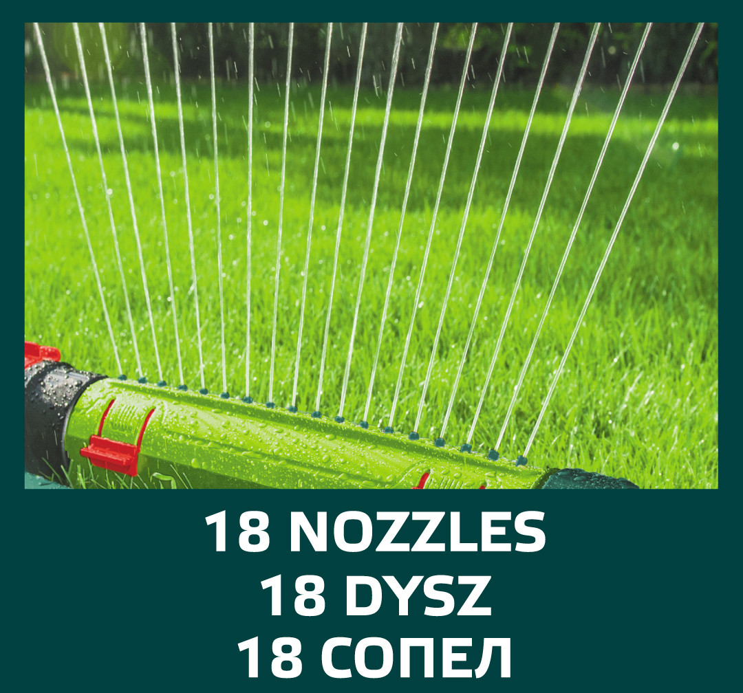 A VERTO 15G772 billenős locsoló ideális megoldás lehet nagyobb kertek vagy zöldterületek hatékony öntözéséhez. Ez a locsoló kiváló minőségű, megrongálódásnak ellenálló anyagból készül, ami biztosítja hosszú távú megbízhatóságát. Akár 285 m2 terület kényelmes öntözését is lehetővé teszi. Az öntöző rendszer 18 permetező fúvókával rendelkezik, amelyek a vízsugarat egy négyszög alakú területre irányítják. A fúvókák szabályozásával nemcsak az öntözés hatótávolsága, hanem szélessége is könnyen beállítható, így biztosítva az egyenletes és hatékony öntözést az egész területen. A locsolóhoz tartozik egy fúvóka eltömődését elhárító tű is, amely segít megelőzni az esetleges problémákat az öntöző rendszer működése során. Az ellenálló műanyagból készült öntöző biztosítja a stabilitást és a tartósságot, így hosszú éveken át hibátlanul fog működni.