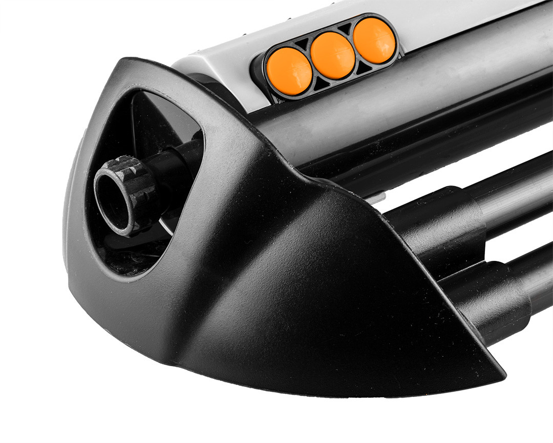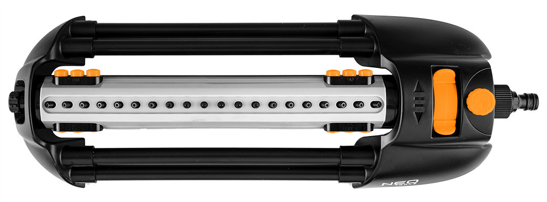 Négyszögesőztető, billenő öntöző, 15-772, NEO - gyepek, kertek és művelt területek öntözésére szolgál. Egyidejűleg 16x20 m-es terület esőztetésére alkalmas. A 20 fúvóka közül 6 ON/OFF funkcióval rendelkezik. Segítségükkel állítható az esőztetés szélessége. Ezenkívül lehetőség van az esőztető mozgási tartományának szabályozására is egy csúszka segítségével. A szabályzógombbal pedig a vízsugár erőssége szabályozható, ami megkönnyíti a locsolás hatósugarának módosítását.