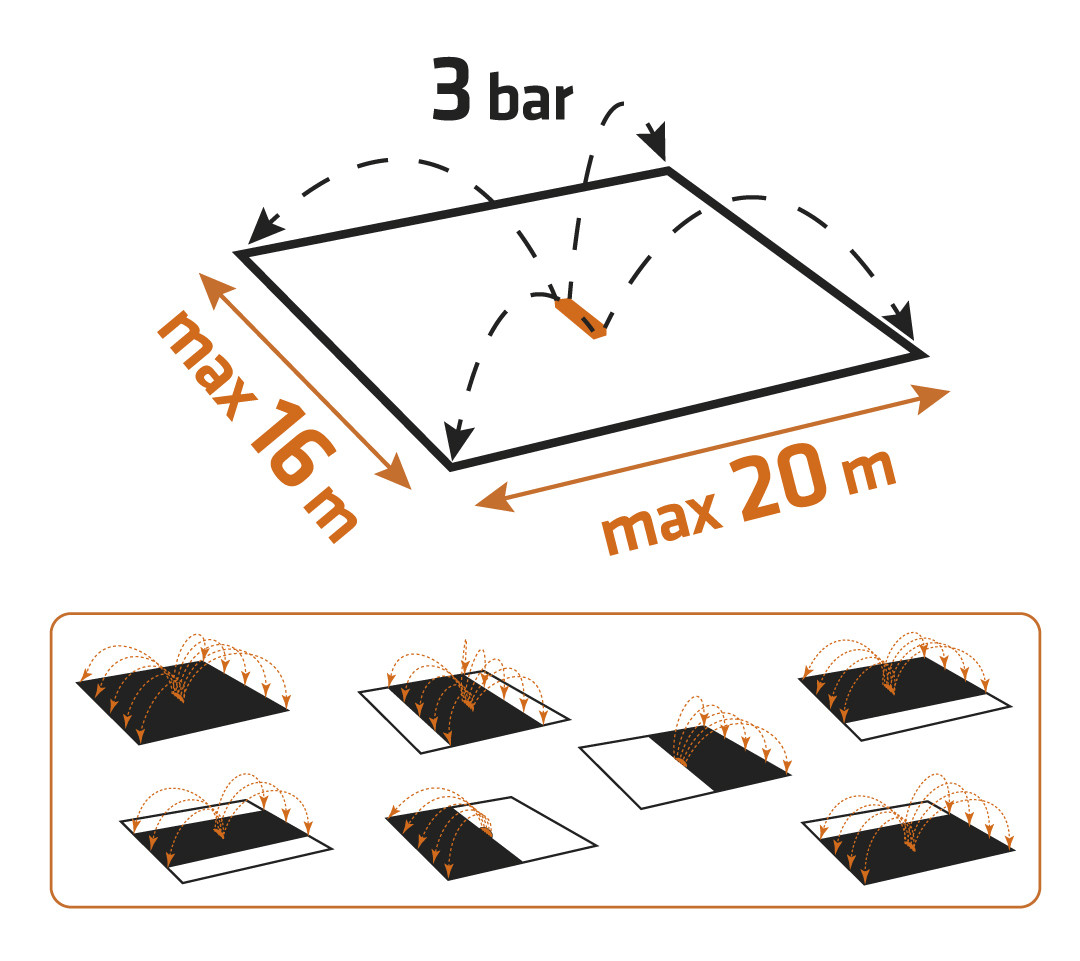 Max. esőztetési tartomány 16x20 m