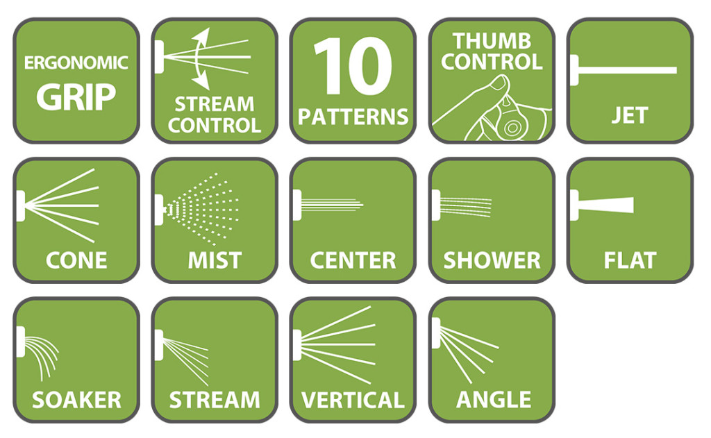 Öntözőpisztoly 10 funkciós, hüvelykujj szabályozás