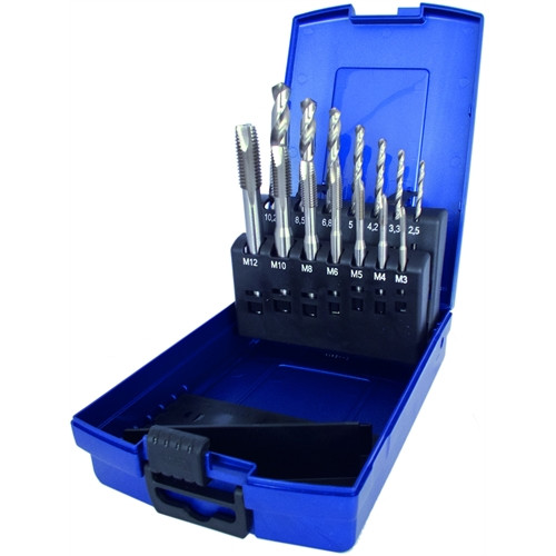 PTG egyenes hornyú gépi menetfúró készlet átmenő furathoz HSS M3-M12 + magfúrók