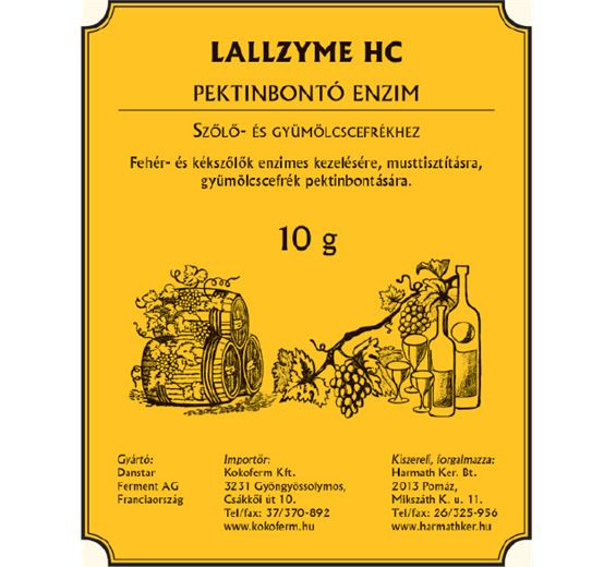 Fehér- és kékszőlők enzimes kezelésére, musttisztítására, gyümölcscefrék pektinbontására Kiszerelés: 10 gr / csomag