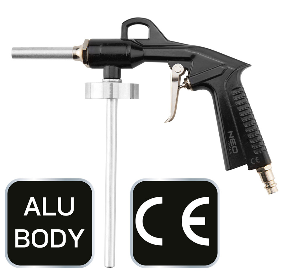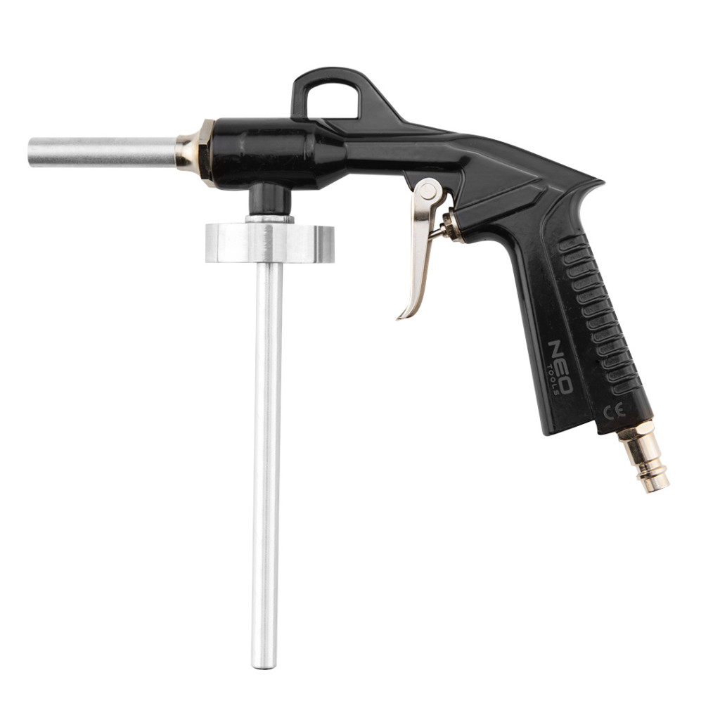 Alváz- és üregvédő pisztoly, 14-720, NEO - többek között zárt profilok védőbevonattal történő festésére szolgál. A pisztolyház alumíniumból készült, ami könnyűvé és kézhez állóvá teszi a terméket. A készülék maximum 12 bar nyomással működik, a tömlő hossza pedig 600 mm. A termék egy praktikus akasztót is tartalmaz, amellyel az eszköz a munka befejeztével kényelmesen félretehető. A kiváló minőséget CE tanúsítvány igazolja.