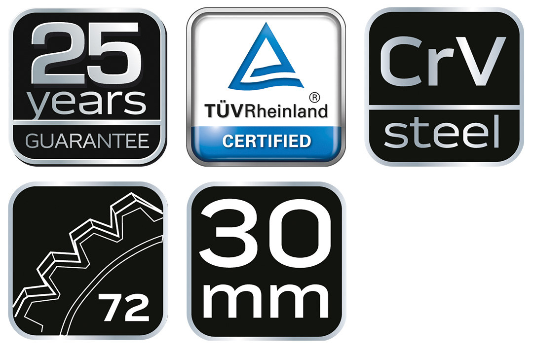 NEO racsnis csillag-villáskulcs. A csillagkulcs 72-fogas kilincsműve gyors, pontos munkát tesz lehetővé. A kiváló minőségű króm-vanádium acél sokéves tartósságot biztosít. A termék kiváló minőségét és megbízhatóságát bizonyítja a TÜV Rheinland tanúsítvány. A NEO márka a professzionális igényeket is kielégíti.