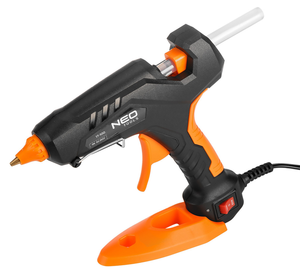 A NEO készlet tartalma: 11 mm-es ragasztópisztoly, 60/100 W, 12 ragasztópatron, 3 ujjvédő, szövet tok 17-100 a NEO-tól egy átfogó készlet, amely hasznos a barkácsolók vagy művészek műhelyében, szőnyegek rögzítésekor vagy bútorok készítésekor. Tartalmaz egy 60 vagy 100 W-os ragasztópisztolyt, amely 11 mm átmérőjű patronokhoz alkalmas. A készülék két hőmérsékleten működik: 120 és 190 Celsius-fok. Praktikus biztosítékkal, hatékony PTC kerámia fűtőelemmel és világító kapcsolóval van felszerelve. Réz cserefúvókával rendelkezik a csöpögés megakadályozása érdekében. A fűtési idő 3 és legfeljebb 5 perc között mozog. A készlethez tartozik egy műanyag állvány a stabilitás érdekében, 12 db 11 mm-es ragasztópatron, 3 ujjvédő és egy cipzáras szövet tok.