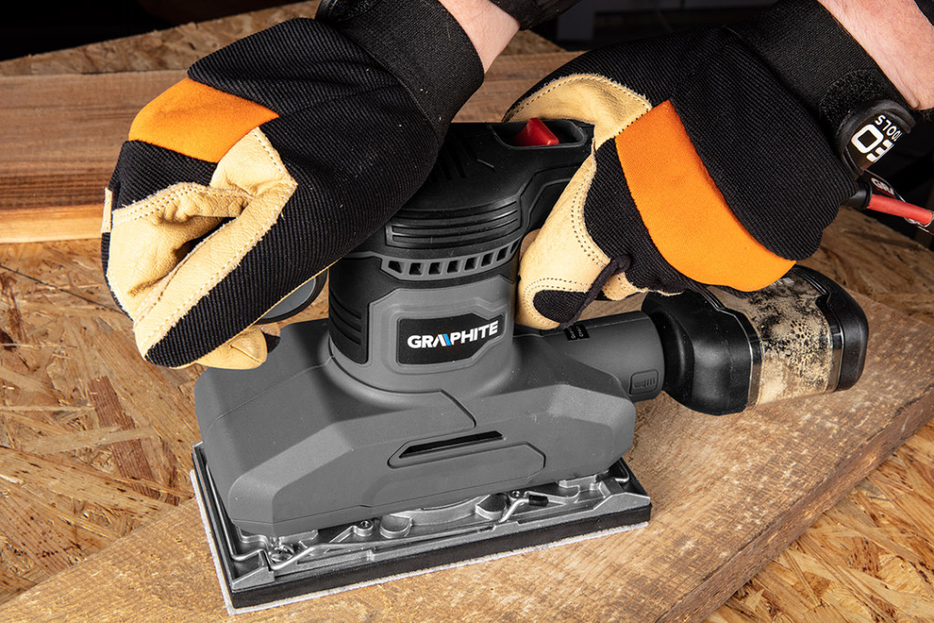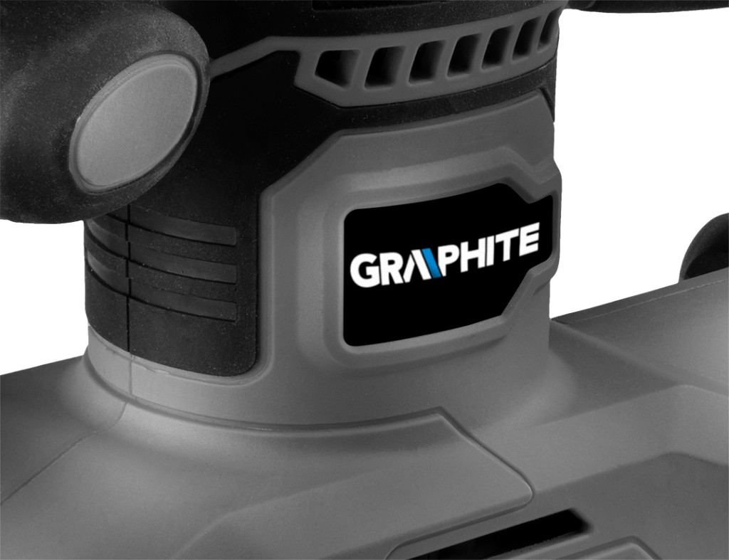 GRAPHITE rezgőcsiszoló, 260W, 90x187mm-es talp. Rendeltetése: kölünféle anyagú felületek végső megmunkálása. A csiszoló talp méretei: 90x187 mm. A berendezés az ergonomikus alakjából és megfelelő kiegyensúlyozottságából fakadóan magas szintű komfortérzetet biztosít a munkavégzéskor. A berendezés háza és kézi fogantyúja csúszásgátló bevonattal van ellátva. A csiszológép kapcsolója folyamatos üzem funkció gombbal rendelkezik. A csiszológép fokozatmentes sebesség szabályozóval rendelkezik. A csiszológép fordulatszáma terhelés nélkül 7000 - 13000 min⁻¹, az oszcilláció maximális mennyisége üresjáratban 14000 - 26000 min⁻¹. Az oszcilláció amplitúdója 2 mm. A csiszoló berendezés a magas hőmérséklettel szemben ellenálló alumínium ötvözetből készült talpal rendelkezik. A gép súlya 1,7 kg, 3m-es gumibevonatú kábellel szerelve.A berendezés integrált por elvezető rendszerrel és gyors csiszolópapír cserélhetőségi rendszerrel rendelkezik. A csiszoló gép készletében tartalék porzsák és csiszoló papír található.