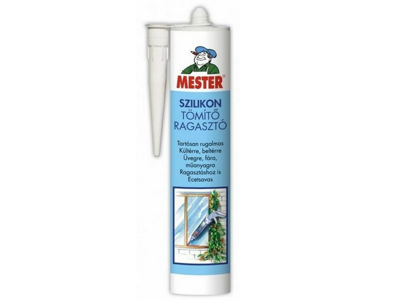 Alkalmazható: Homlokzati fugák, hézagok tömítésére Idõjárásnak kitett külsõ felületekre is Tágulási hézagokba is Ragasztási feladatokra, nem nedvszívó aljzatra is Fém- és üvegszerkezetek rugalmas tömítésére Kül- és beltérben Cement- és mésztartalmú felületekre, rézre, horganyra MESTER Semleges Szilikont használjon. Tulajdonságai: tartósan rugalmas marad kitünõen tapad a legtöbb felületre UV-álló és vízzáró Anyag típusa: polisziloxán hõállóság: -60 C° - +180 C° ecetsavasan térhálósodó kikeményedés után szagtalan nem veszélyes készítmény Használati utasítás: Az aljzat legyen száraz, tiszta. Szükség esetén a fuga mélységét körkeresztmetszetû fugazsinór behelyezésével korrigálhatja. Használjon festõszalagot a tökéletes és esztétikus fuga kialakítása érdekében. Kinyomópisztollyal hordja fel az anyagot, majd desztilált vízzel simítsa el. Simítás után a festõszalagot azonnal el kell távolítani. Ne használja esõben, +5 °C alatti ill. +40 °C feletti hõmérsékleten.