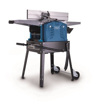 HMS 1500 - vastagoló gyalugép állvánnyalA Scheppach HMS 1500 egy kombinált gép igényes barkácsolóknak, vagy olyan műhelyekbe, ahol elvárt a profi eredmény. A készülék egyaránt alkalmas klasszikus gyalulásra és vastagolásra is. A két funkció közti átállítás egyszerű, nincs hozzá szükség semmilyen szerszámra. A kompakt kialakítás minimalizálja a térigényét. A gép mozgatását megkönnyítik a standard tartozék állványra szerelt kerekek és a nagy, állítható tolószárak. A robusztus szerkezet probléma mentesen megbirkózik a puha- vagy keményfa gerendákkal, lécekkel, deszkákkal, akár 260 mm-ig. Az erős, 2200 W-os motor és 2 db, 6500 ford./perc sebességgel forgó, acél kés biztosítja a nagyon tiszta és pontos vágást, ami a gyakorlatban még finomabb megmunkálást jelent. A kések nagyon egyszerűen cserélhetők, illetve a gép kezelése is nagyon könnyű és kényelmes. A vastagolási magasság (max. 160 mm) állítása is egyszerű, forgó fogantyú segítségével. A pontosságot tovább segíti a nagy, tartós, minőségi alumíniumöntvény gyaluasztal, illetve a pontos és masszív illesztőütköző, mely 90°-135° terjedelemben állítható. A vastagolóasztal kopásálló fémöntvényből készül. A tolópálca és az elszívó csatlakozó standard tartozék, ugyanúgy, mint a biztosítékok, vagy az akaratlan indítástól védő biztonsági kapcsoló. Motor: indukciós 230 V/50 Hz Teljesítmény: 2200 W Fordulatszám: 6500 ford./perc Motor biztosíték: igen Kések száma: 2 Gyalulás: Max. szélesség: 260 mm Max. mélység: 3 mm Gyaluasztal mérete: 1040 x 280 mm Illesztőütköző állítása: 90° - 135° Vastagolás: Max. szélesség: 260 mm Max. áteresztési magasság: 160 mm Max. mélység: 3 mm Gyaluasztal mérete: 400 x 260 mm Gép mérete: 1110 x 620 x 980 mm