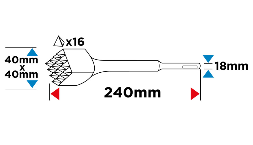 Stokkoló 40 x 40 mm, 16 fogú, SDS MAX, 57H552 - egy nagy szilárdságú kőfaragó szerszám. Útépítési, építési és felújítási munkákhoz elengedhetetlen. A szerszám használatával megmunkált anyag felülete érdesebb lesz, így jobban köt hozzá a habarcs, ragasztó vagy gyanta. A stokkolót különösen hosszú élettartam és megbízhatóság jellemzi.