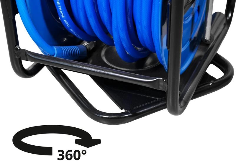 - Kiváló minőségű sűrített levegős tömlőtekercs 30 m sűrített levegős tömlővel- Csavarásmentes, stabil vázszerkezet- Nagy alaplemez biztosítja a biztonságos állást- A keret 360 fokban elforgatható- Csatlakozódarabon lévő csomópontvédelem- Stabil kurbli reteszelő mechanizmussalA Güde sűrített levegős tömlőtekercs tökéletes kiegészítője kompresszorának és sűrített levegős berendezéseinek. A 360°-ban elforgatható vázszerkezeten egy masszív, 30 méteres PU tömlő, a csatlakozásoknál megfelelő gyűrőcsatornákkal biztosítja a maximális rugalmasságot. Az orsó fékkel rögzíthető. A tömlő egy kurbli segítségével könnyen és gyorsan visszahúzható az orsóra. Műszaki adatok max. üzemi nyomás: 17 bar Tömlő hossza: 30 m Belső átmérő: 8 mm Külső átmérő: 12 mm Felszakadó nyomás: 55 bar Anyag: PU Hosszúság: 335 mm Széles: 255 mm Magasság: 360 mm Logisztikai adatok Csomagolási méretek Hosszúság 340 mm Széles 270 mm Magasság 380 mm Nettó súly: 8,14 kg Bruttó tömeg: 8,96 kg GTIN: 4015671028815 Cikkszám: 02881